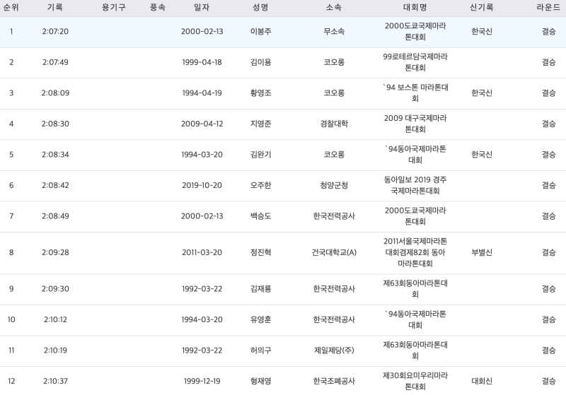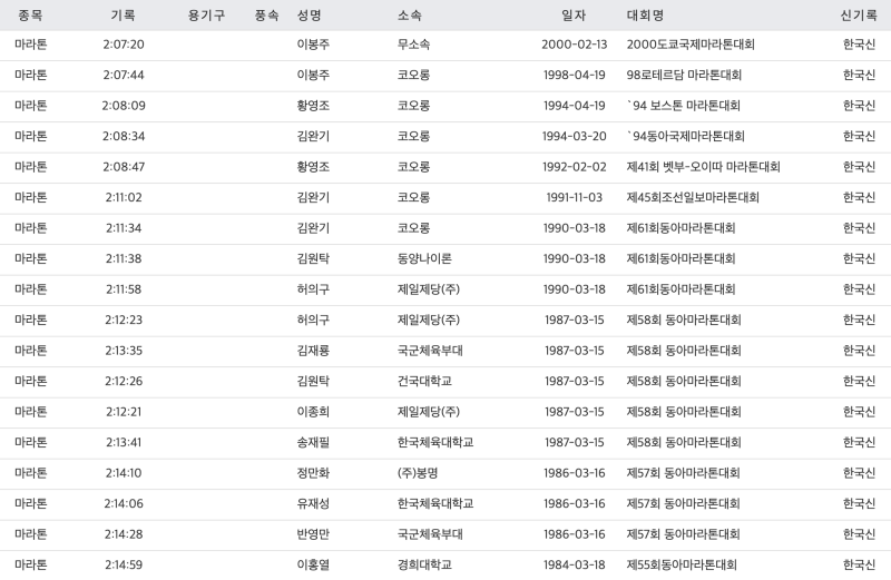 결론부터 보면 이봉주 마라톤 최고기록(2:07:20)은 평균 페이스가 약 3분 01초/km 수준입니다.