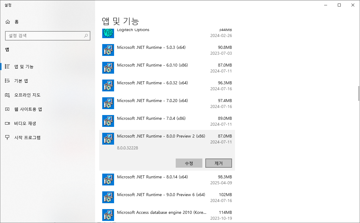 윈도우11은 설정 → 앱 → 선택적 기능 → 기타 Windows 기능, 윈도우10은 프로그램 및 기능 → Windows 기능 켜기/끄기에서 .NET 항목이 켜져 있는지 확인합니다.