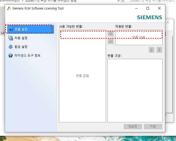 라이선스 도구 또는 NX 환경설정 화면에서 현재 사용 가능한 NX 번들을 확인합니다.