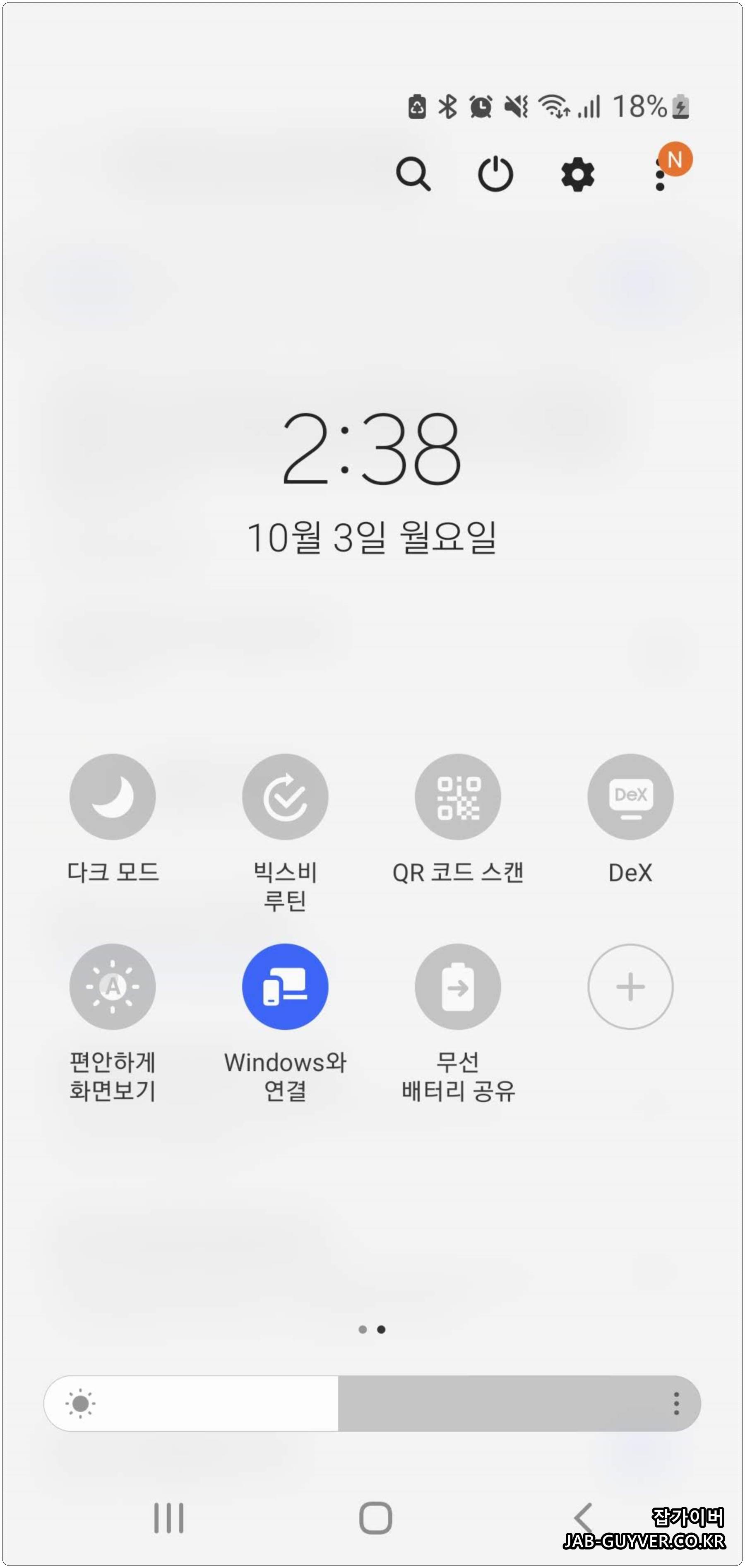 갤럭시 기준으로 상단 바를 내려 Windows와 연결(또는 Link to Windows)을 켜 줍니다.