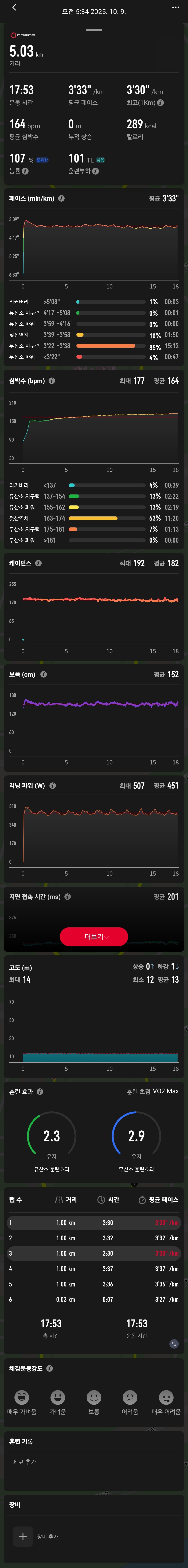헬스싱크가 지원하는 대상 앱 중에 코로스가 포함되어 있고, 활동 데이터가 잘 전달되면 코로스 앱에서도 기록이 꽤 그럴듯하게 정리됩니다. 특히 코로스 쪽은 지표 화면이 직관적이라 “기록 보는 맛”이 있어요.