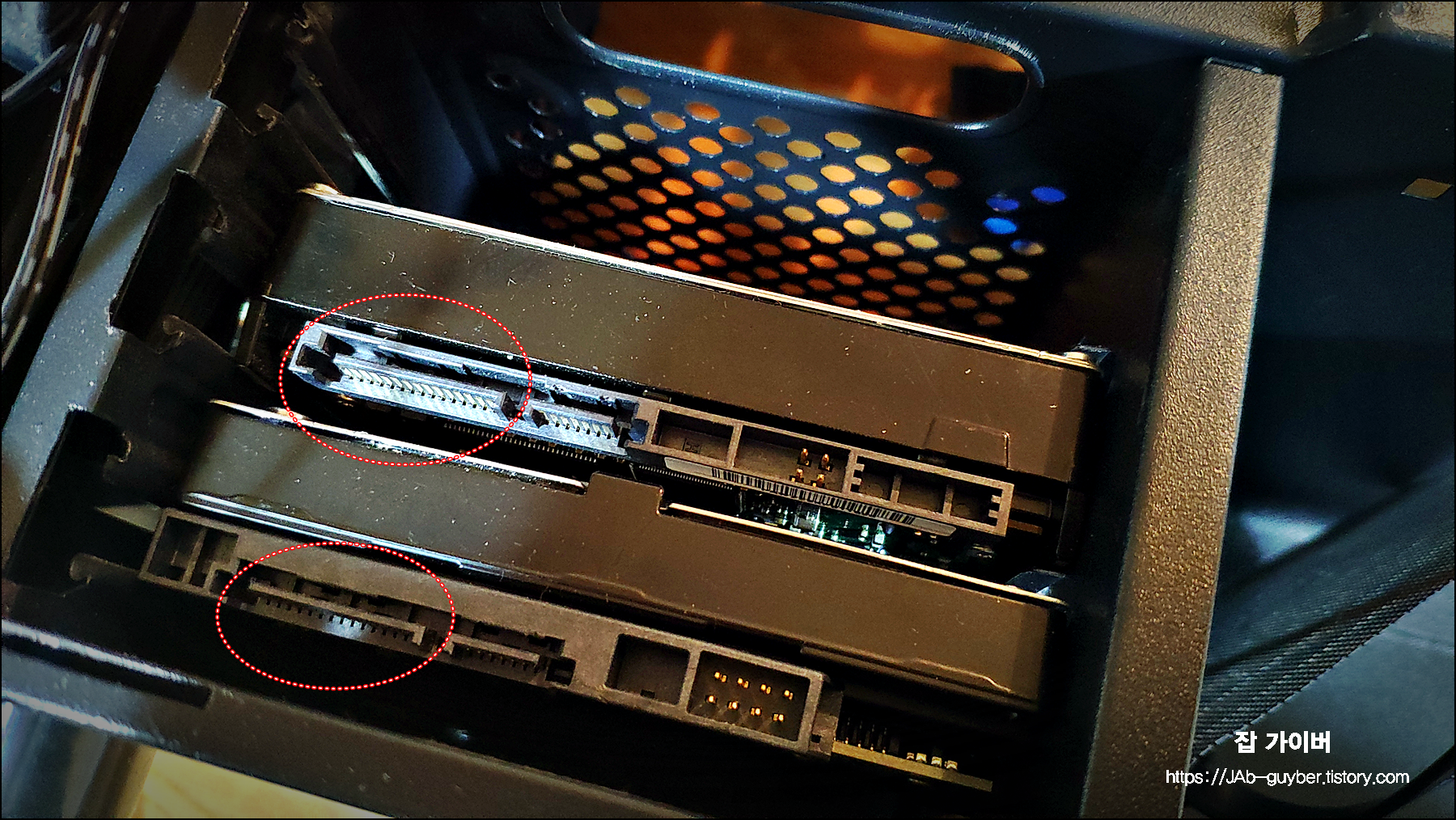 저장장치 쪽은 SATA 전원 커넥터를 모두 분리합니다. (HDD/SSD/ODD 각각)