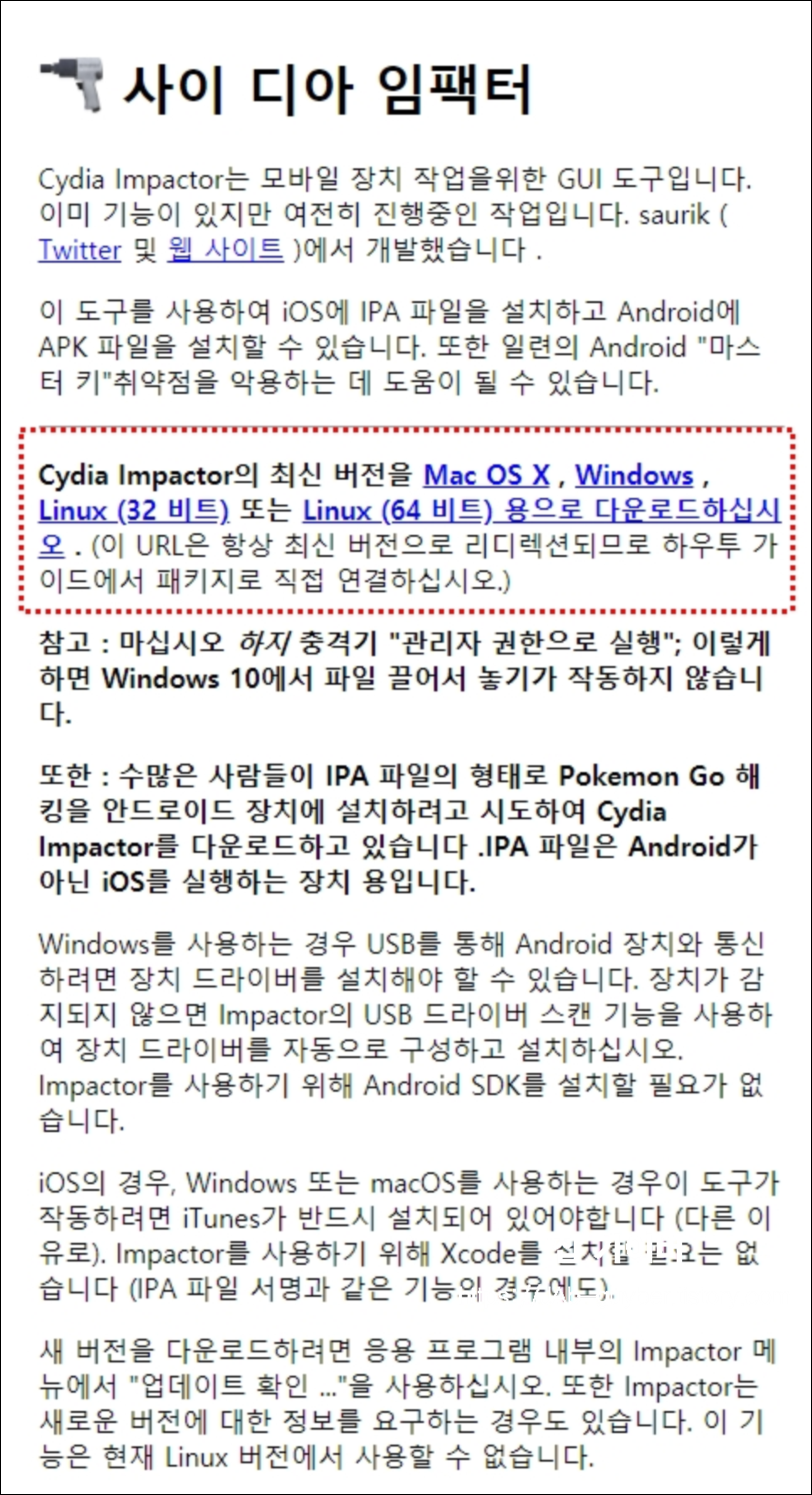 - 2023년 이후 Cydia Impactor는 개발이 중단된 상태