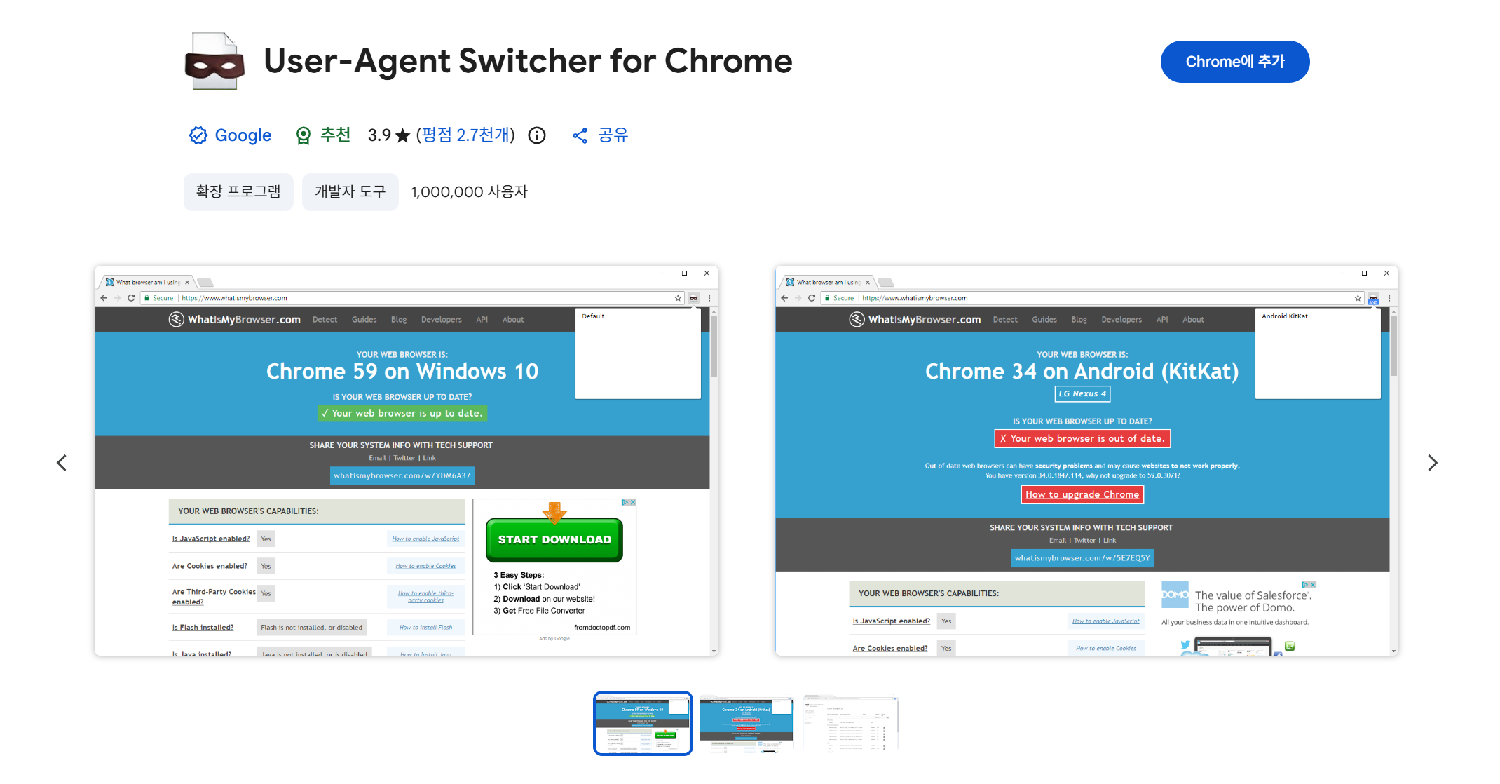 User-Agent Switcher 같은 도구를 사용하면 매번 설정할 필요가 없습니다.
