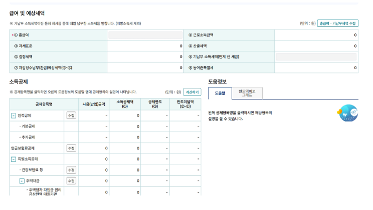 신용카드 및 체크카드 공제 자동계산