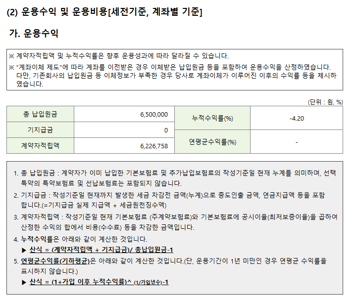 실제 보고서에도 총 납입원금, 계약자적립액, 누적수익률, 총 수수료 금액이 따로 표기되어 있습니다. 이 구조를 제대로 보면 “운용이 망했다”기보다 보험형 연금저축 특유의 비용 구조가 먼저 드러난 상태라고 보는 편이 더 정확합니다.