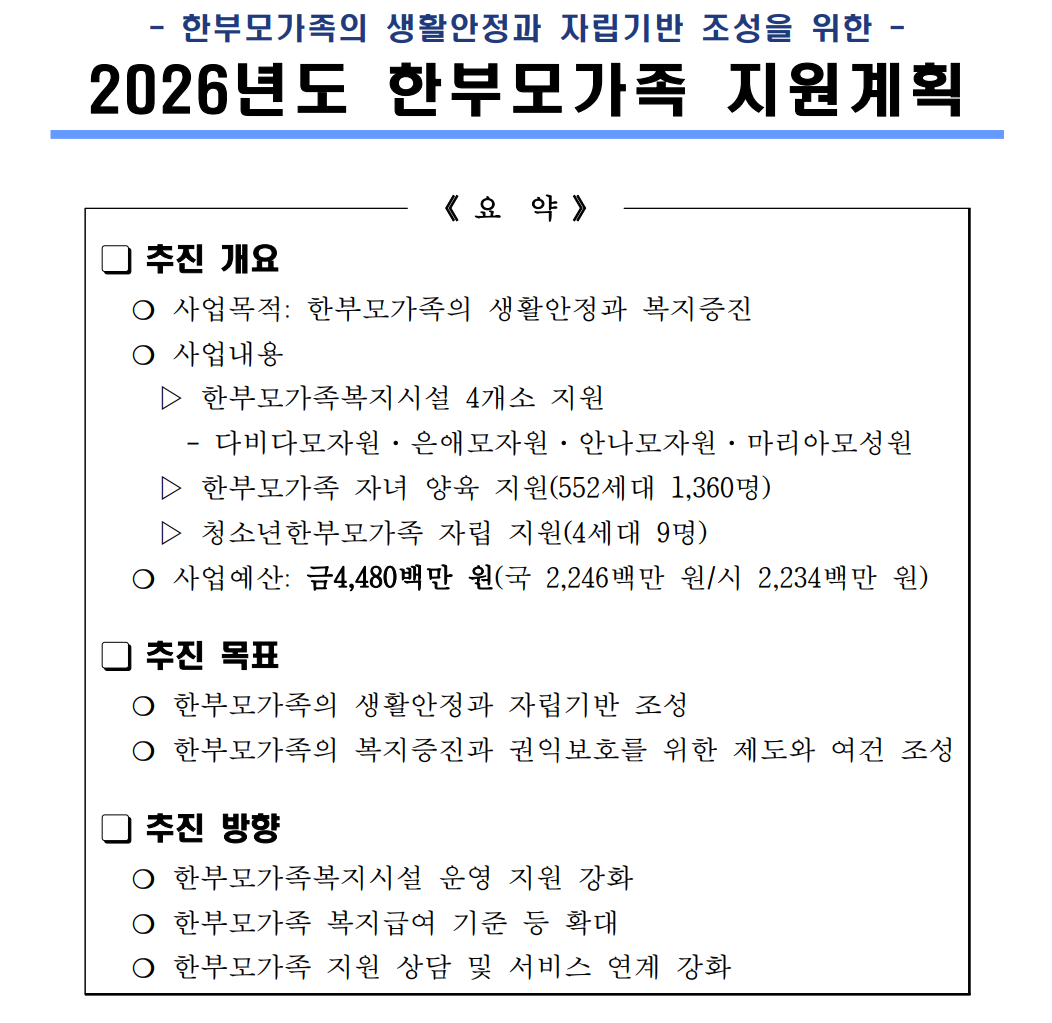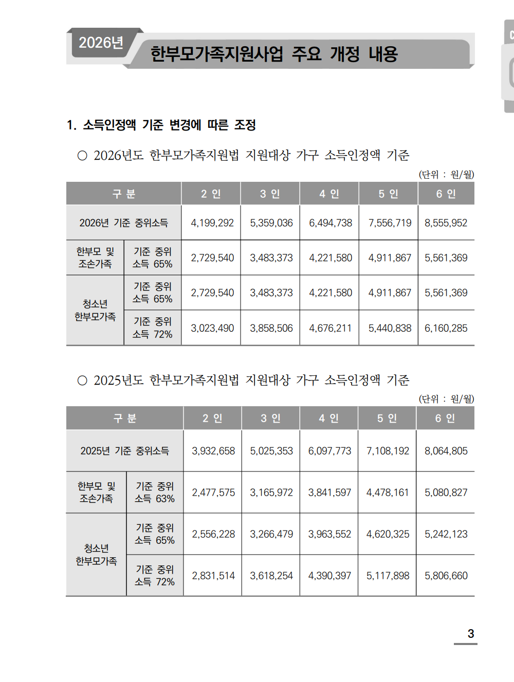 공식 안내 기준상 2026년 한부모가족 복지급여와 한부모가족증명서 발급 기준은 아래와 같습니다.