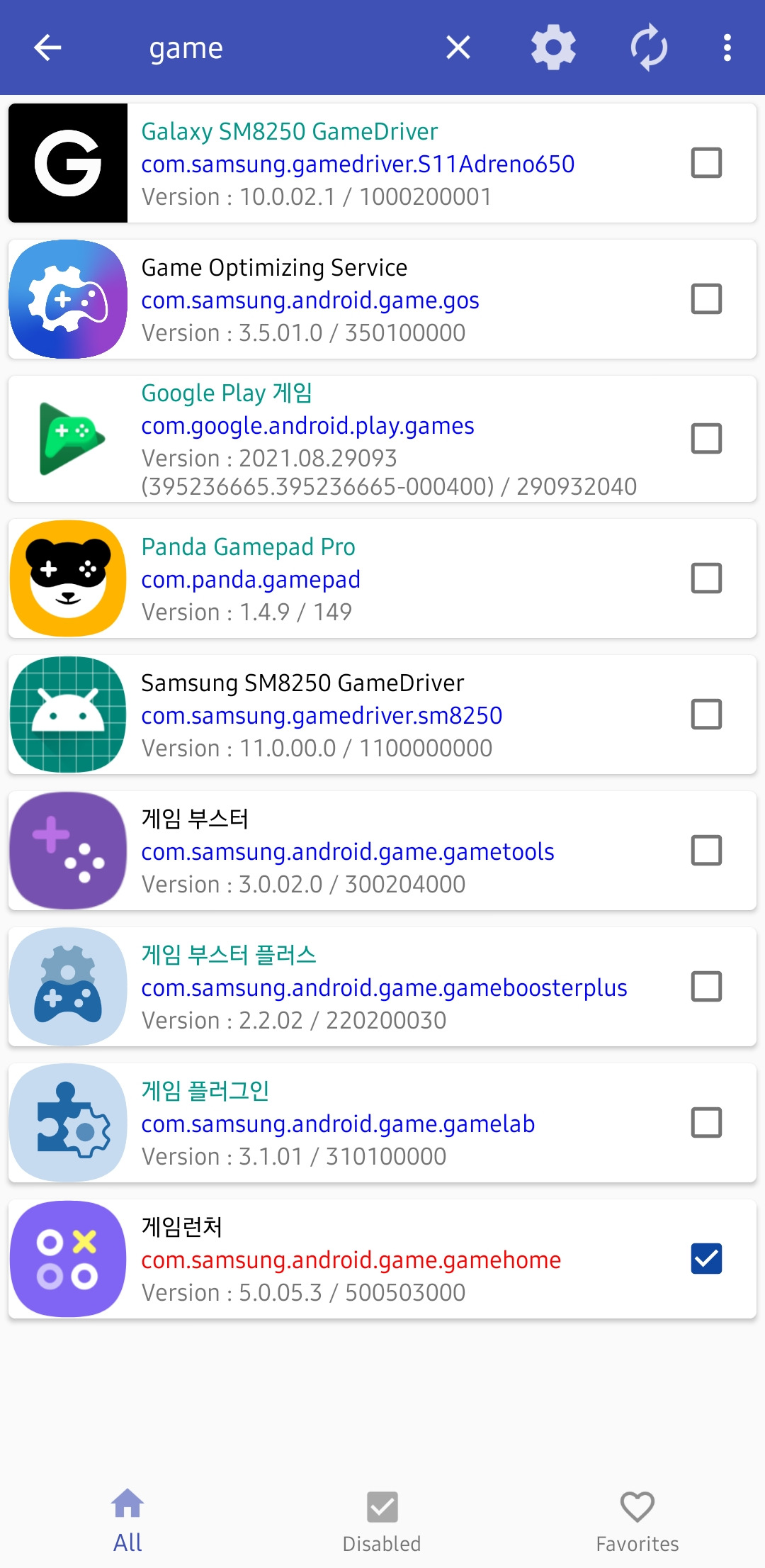 비활성화 후 게임 목록 노출이 달라진 상태 예시