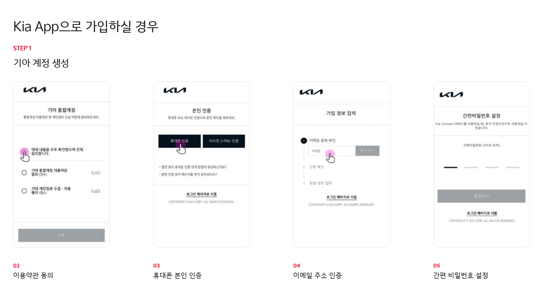 | 차주 명의 가입 | 차량 최초 구매 후 구매자 본인 명의로 가입 | Kia App 또는 내비게이션에서 가입할 수 있습니다. |
