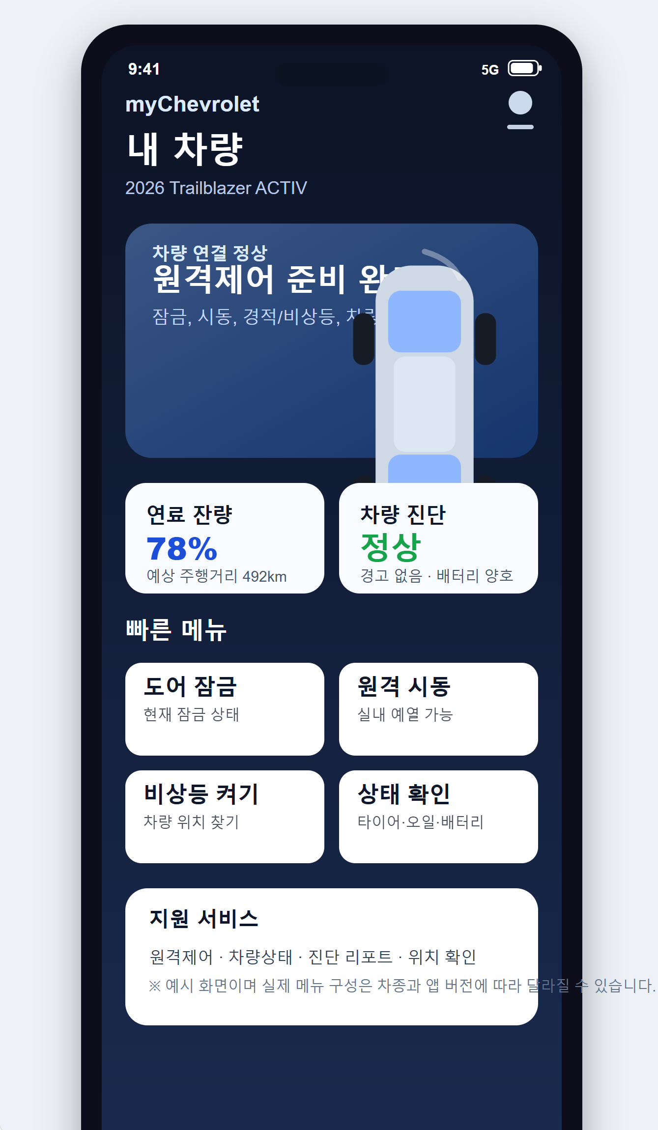 쉐보레 공식 소개 페이지 기준으로 온스타는 크게 원격 제어와 차량 진단 두 축으로 보면 이해가 쉽습니다.