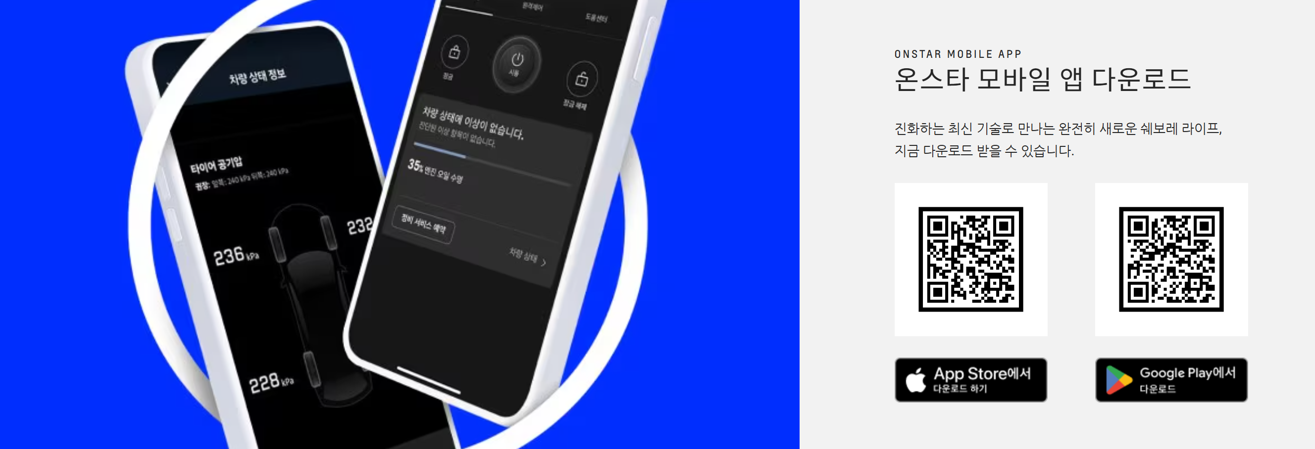 공식 FAQ 설명 기준으로는 쉐보레 홈페이지 통합 계정 생성 후, 휴대폰에 마이쉐보레 앱을 설치해 온스타 서비스를 시작하는 방식으로 이해하면 됩니다.