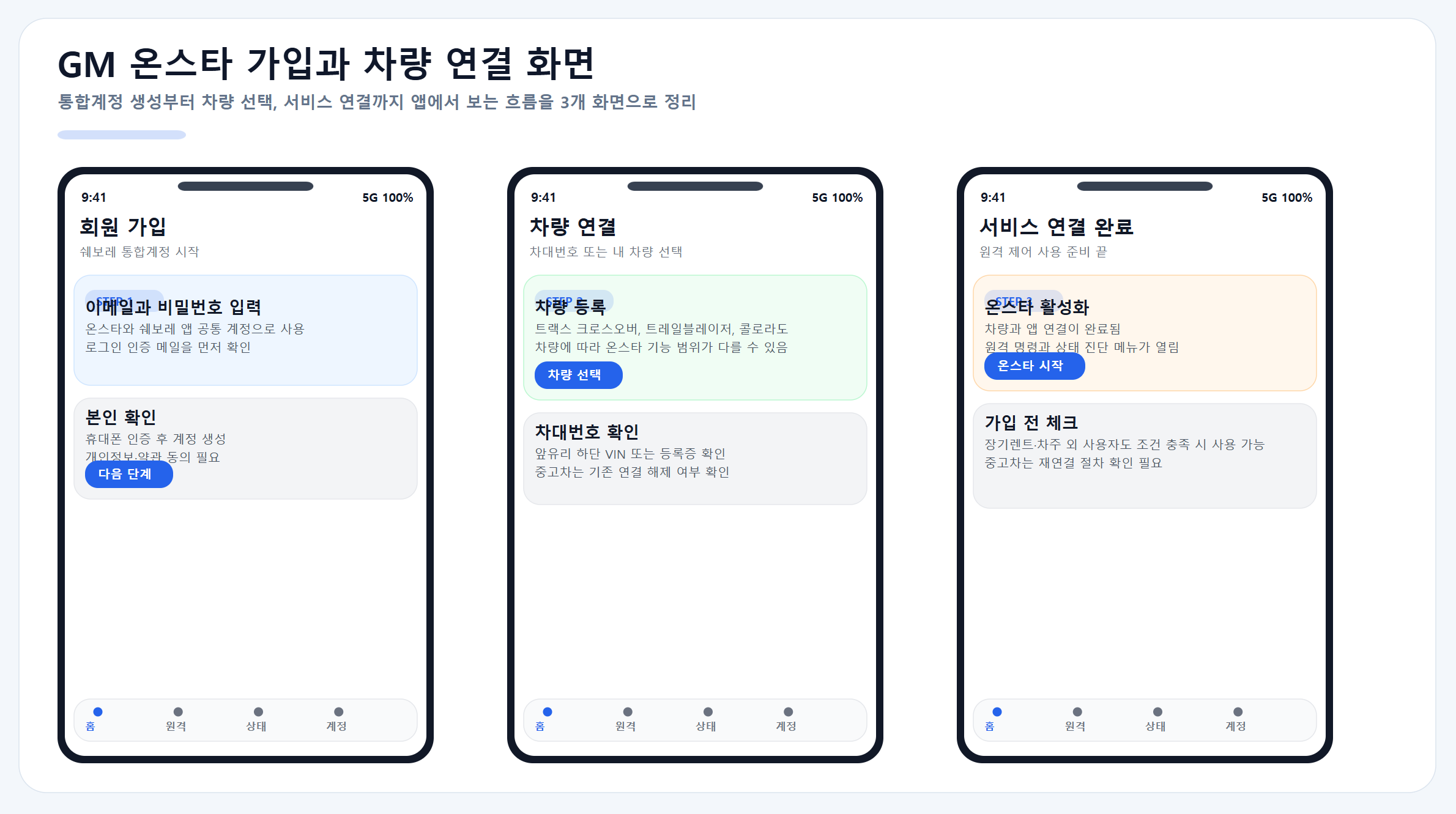 한국GM 차량을 타고 있다면 요즘은 단순히 원격시동만 되는지 정도가 아니라, 내 차가 온스타 지원차종인지, 무상 이용 기간이 얼마나 남았는지, 앱으로 어디까지 제어할 수 있는지부터 먼저 확인하는 편이 훨씬 낫습니다.