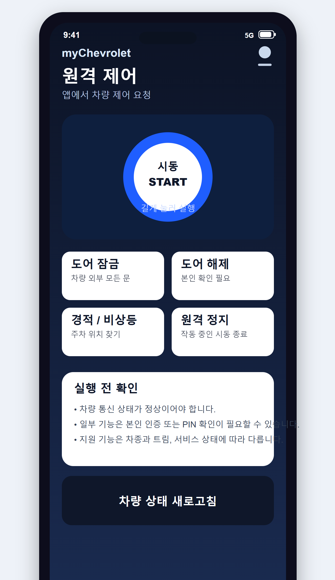 - 앱 홈에서 원격 제어와 차량 상태가 정상적으로 보이는지 확인합니다.