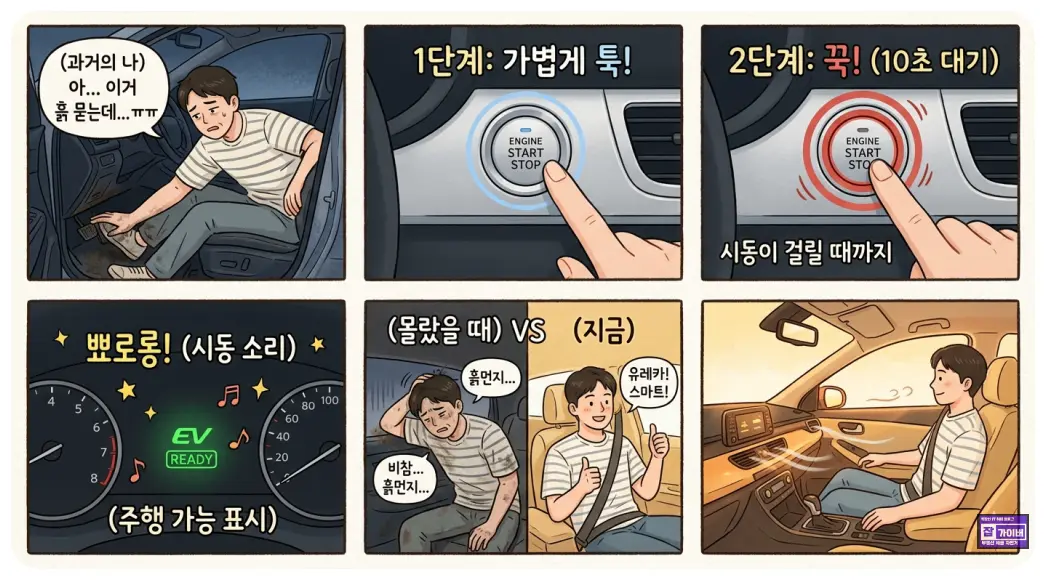 화면이 켜지고, 계기판이 켜지고, 조용하다 보니 이미 시동이 걸린 것처럼 느껴질 수 있습니다.