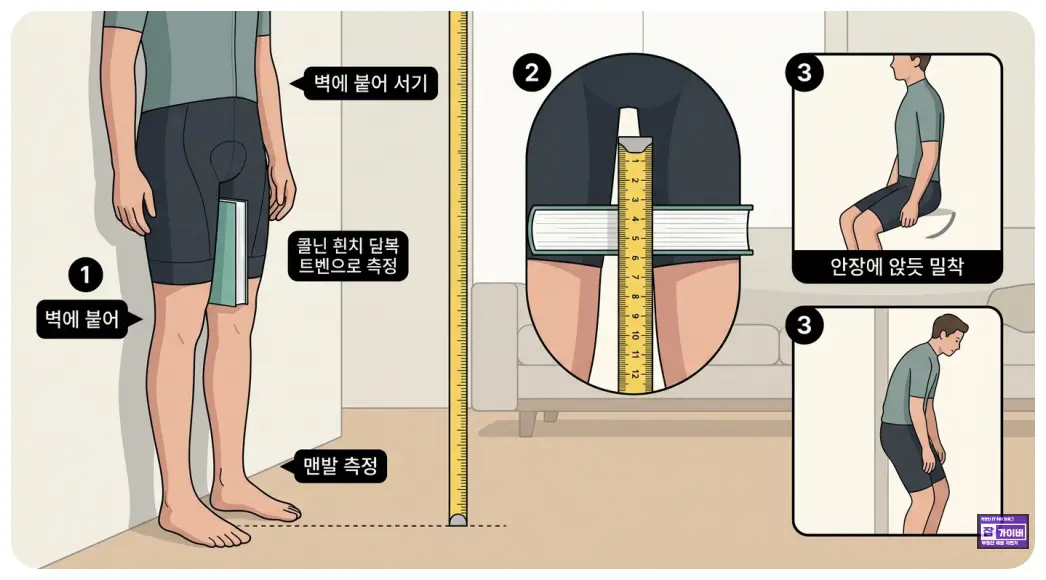 여기서 중요한 점은 가볍게 대는 것이 아니라 안장 압박을 흉내 내듯 밀착해서 재야 한다는 점입니다. 그래야 실제 라이딩 자세에 가까운 수치가 나옵니다.