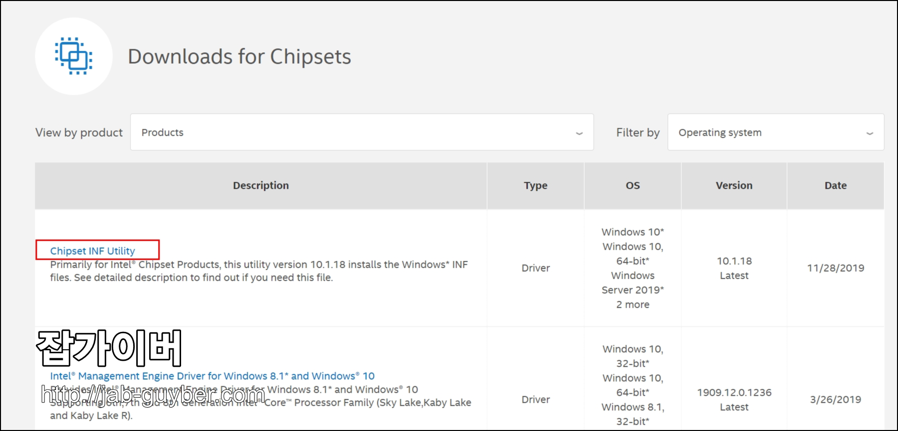 - 부족하면 인텔 다운로드 센터에서 칩셋 패키지를 수동으로 찾습니다.