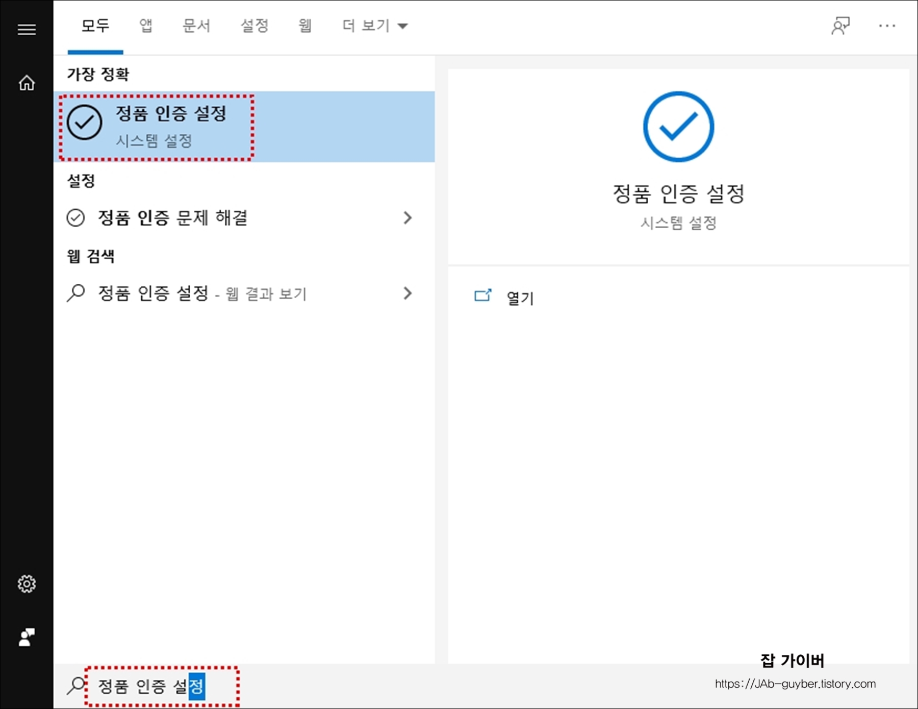 윈도우10에서 윈도우10 정품인증 CMD가 잘 먹혔는지 확인하는 위치는 예전과 같습니다.