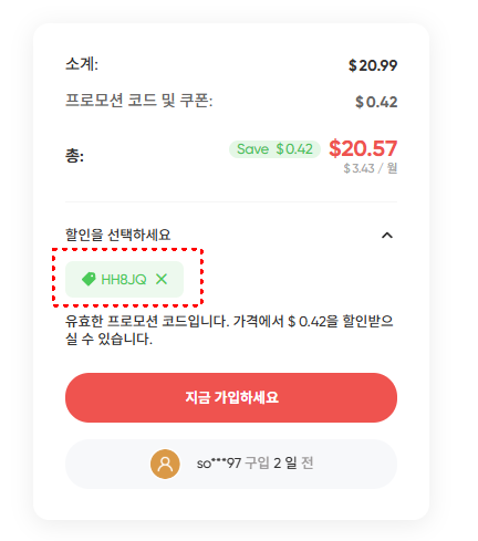 참고로 겜스고를 통해 구독 시 할인코드 HH8JQ 입력해주시면 추가할인이 되니 참고하세요