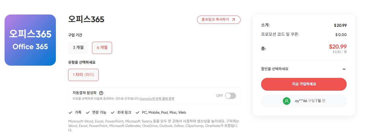 저 같은 경우 금액이 부담스러워서 겜스고를 통해 오피스365를 결제해서 사용하느데 가격도 저렴해서 3년째 사용하고 있는데 이와 함께 넷플릭스나 유튜브도 함께 사용하고 있습니다.