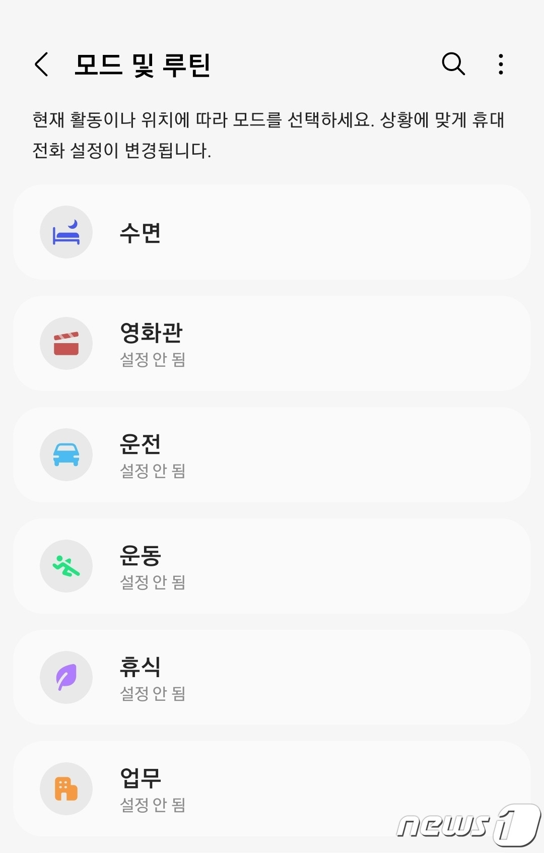 모드 및 루틴 메뉴에 들어가면 기본 모드와 사용자 지정 루틴을 함께 관리할 수 있습니다.