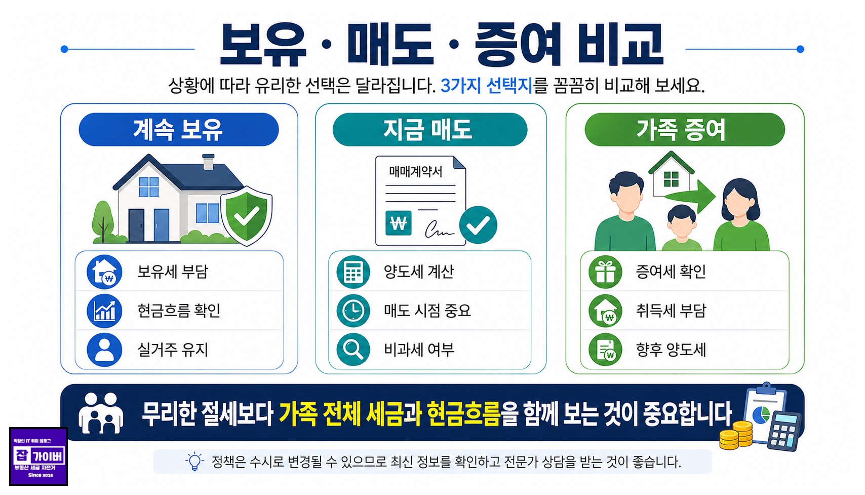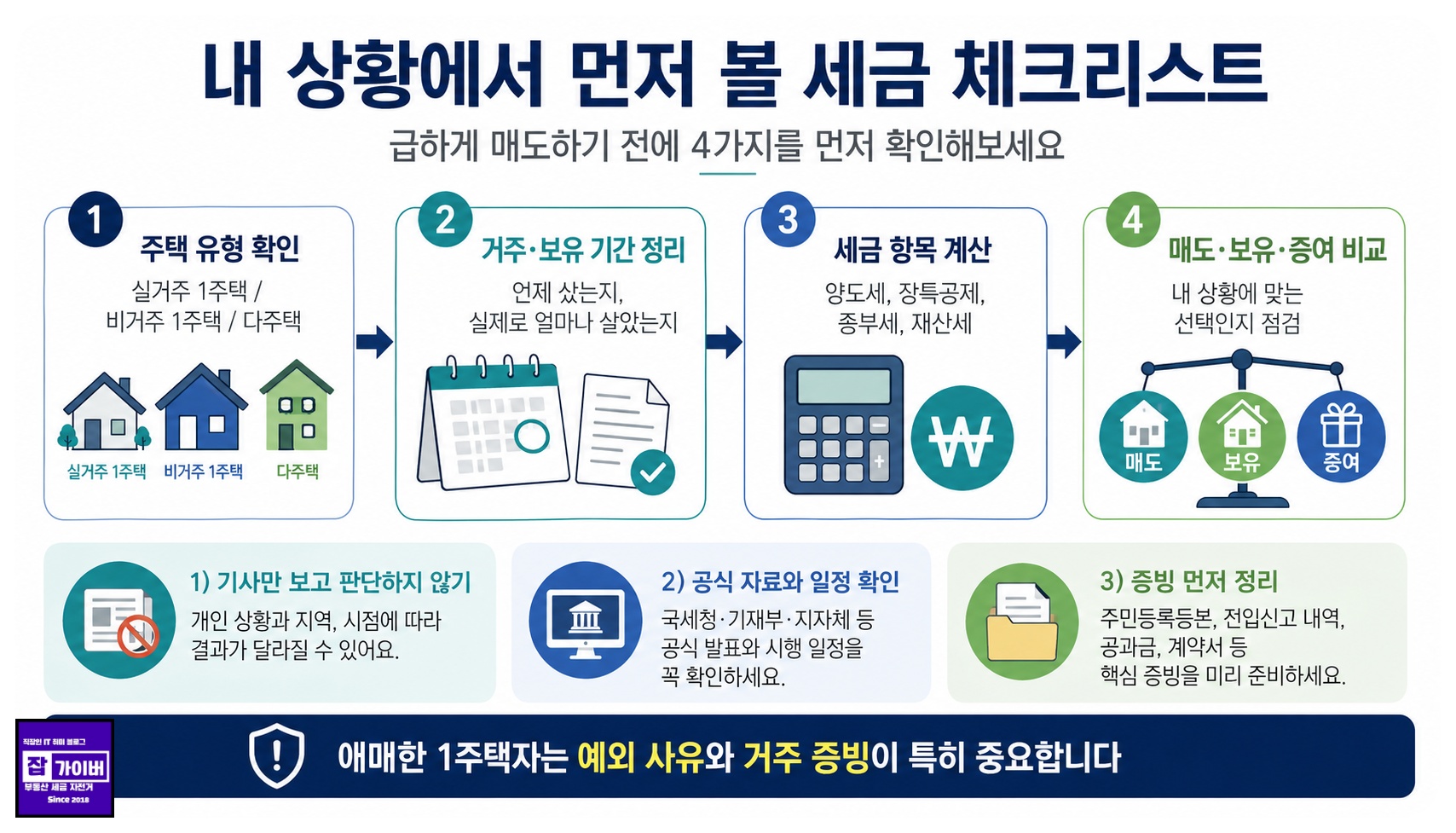 A. 세금만 보고 급하게 결정하기보다 예상 양도세, 보유세, 대출이자, 전세보증금, 향후 거주 계획을 함께 계산해야 합니다.