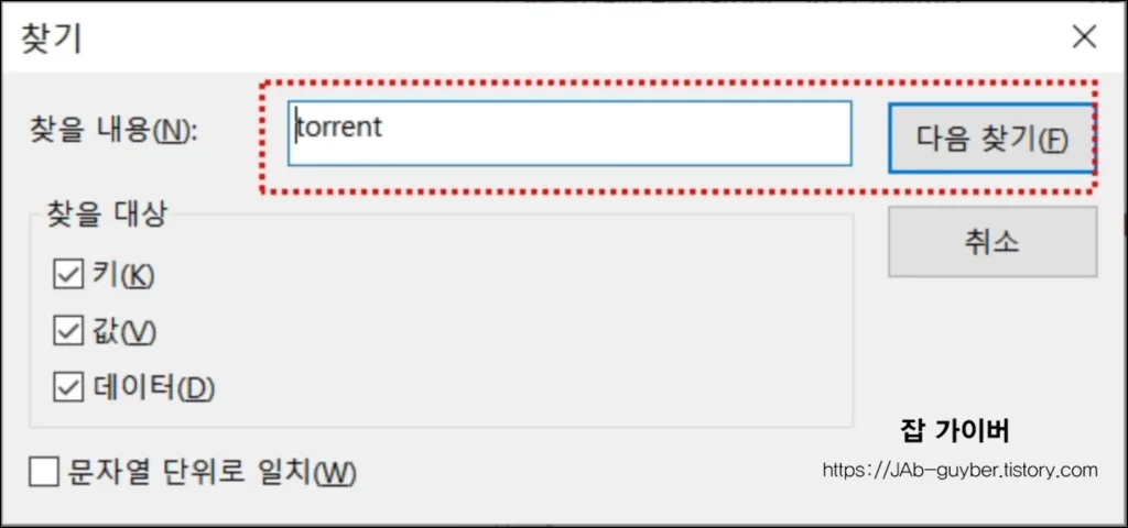 토렌트 레지스트리 삭제