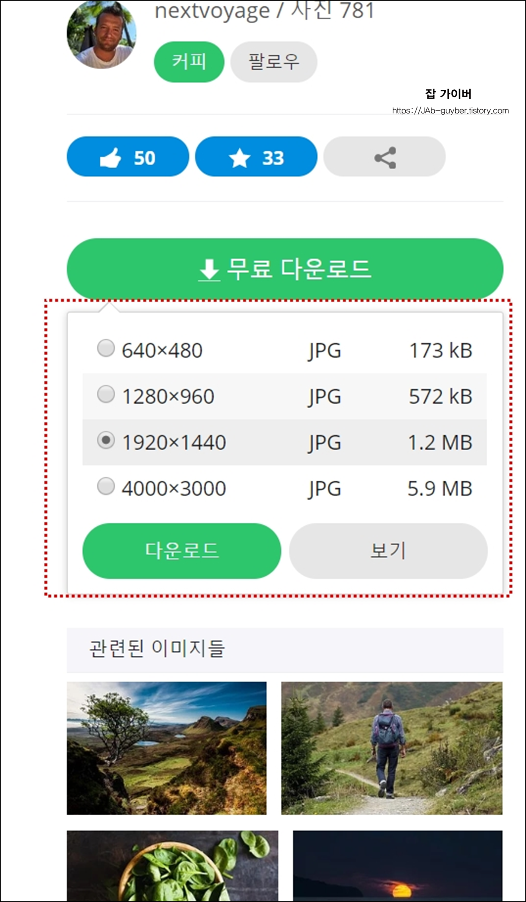 원하는 이미지를 선택하고 무료다운로드를 선택합니다.