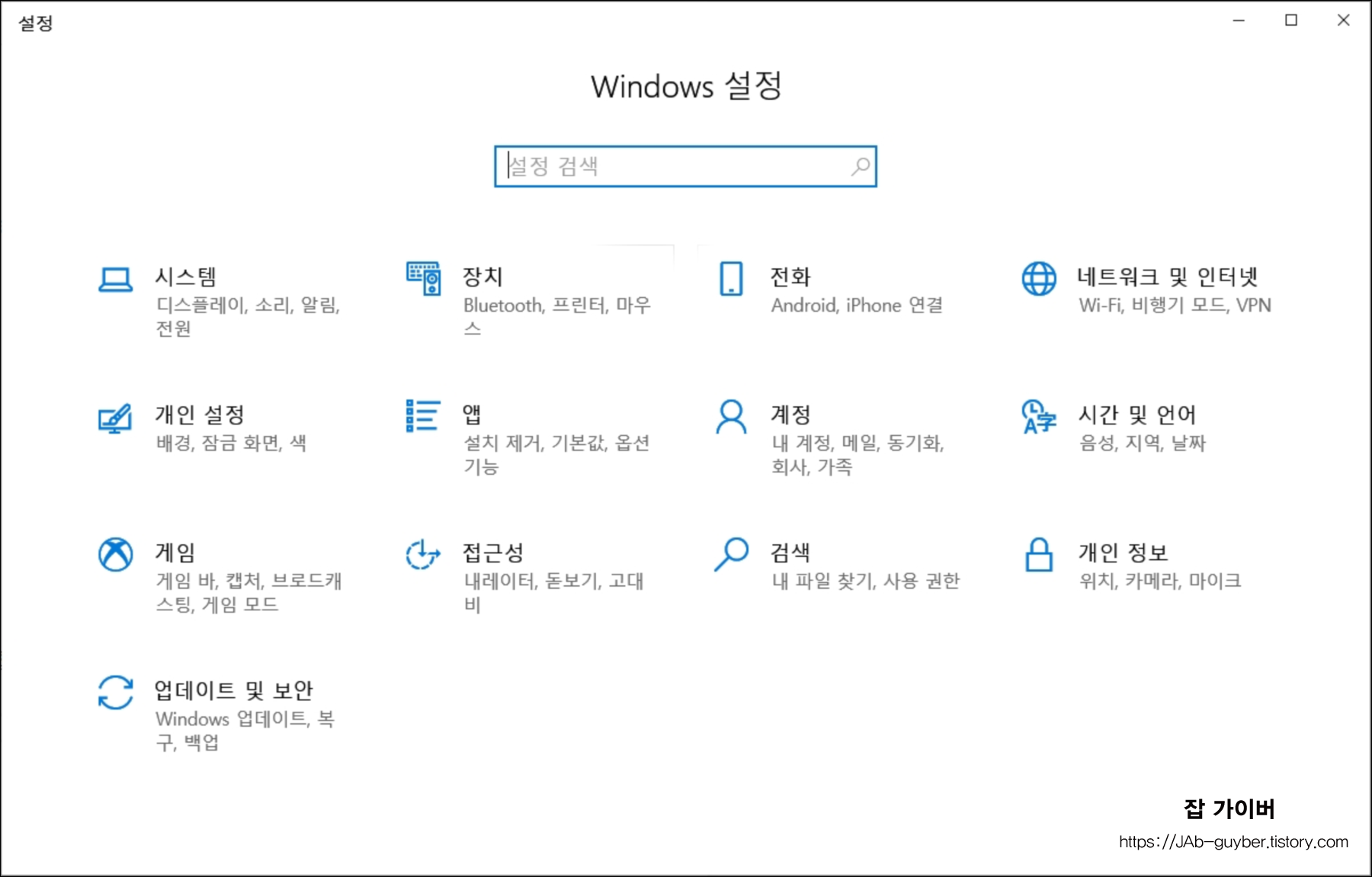 일반 사용자가 가장 많이 쓰는 경로는 Windows 설정에서 들어가는 방법입니다.