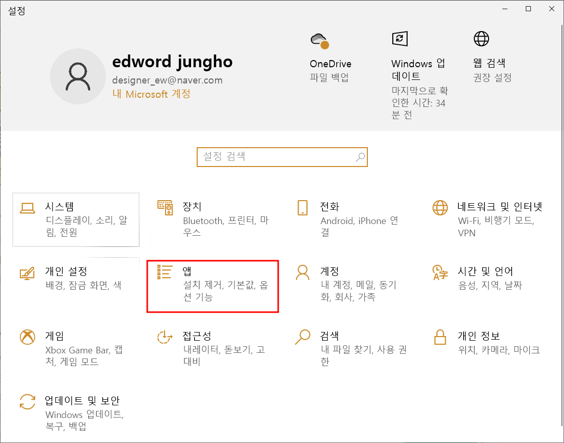 - [시스템]을 클릭한 다음 [앱 및 기능] 옵션을 선택합니다.