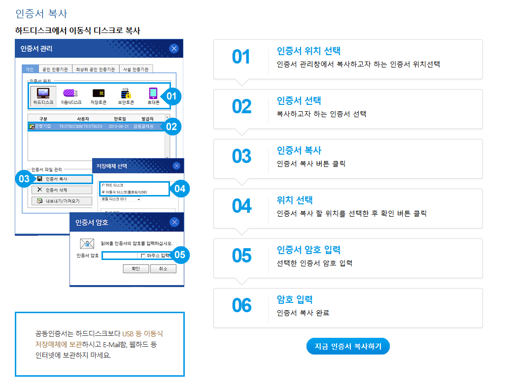 공동인증서 USB 복사·외장하드 이동 메뉴 살펴보기