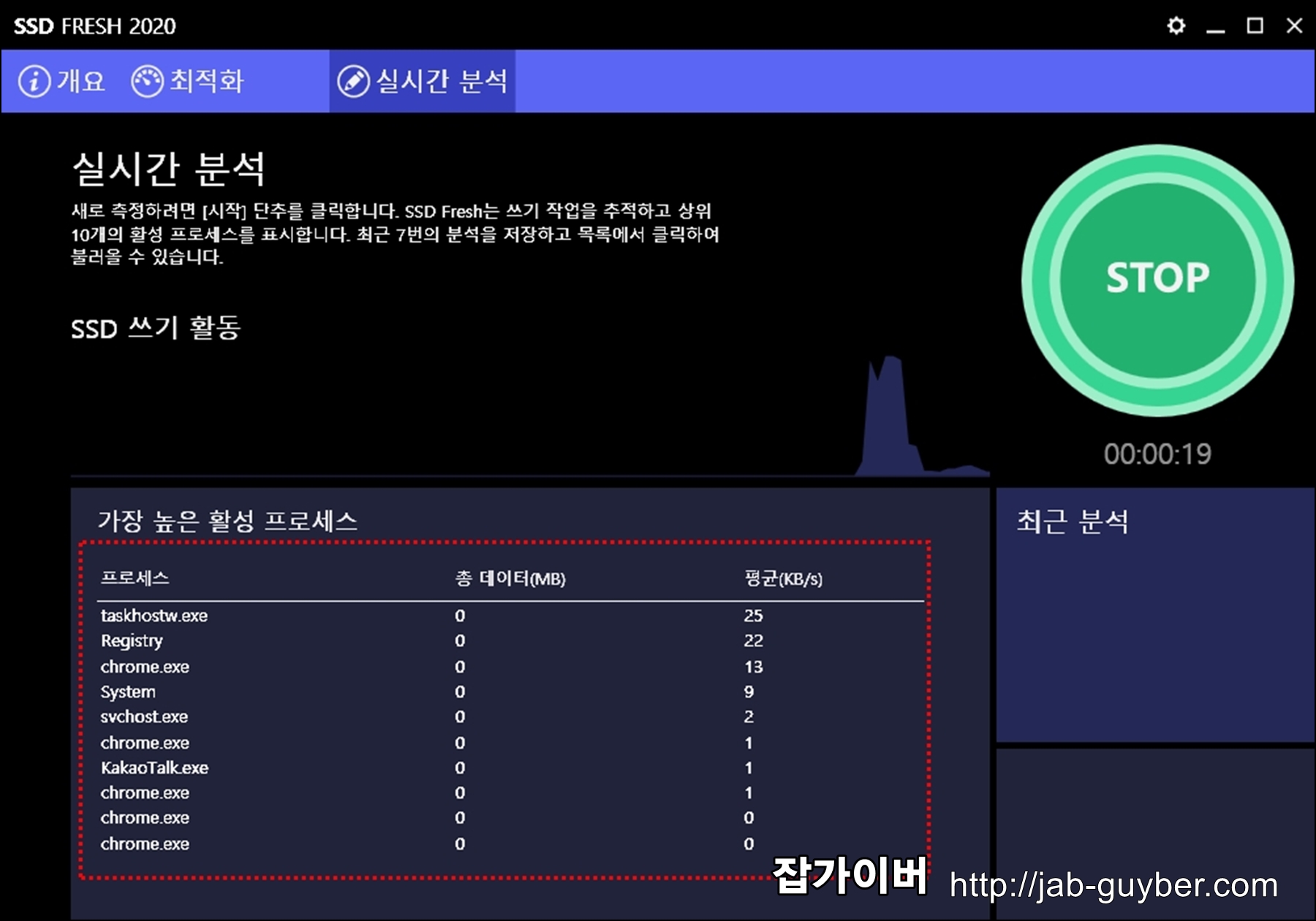 그 외 실시간 분석을 통해 가장 리소스를 많이 사용하는 프로세스를 확인할 수 있습니다.
