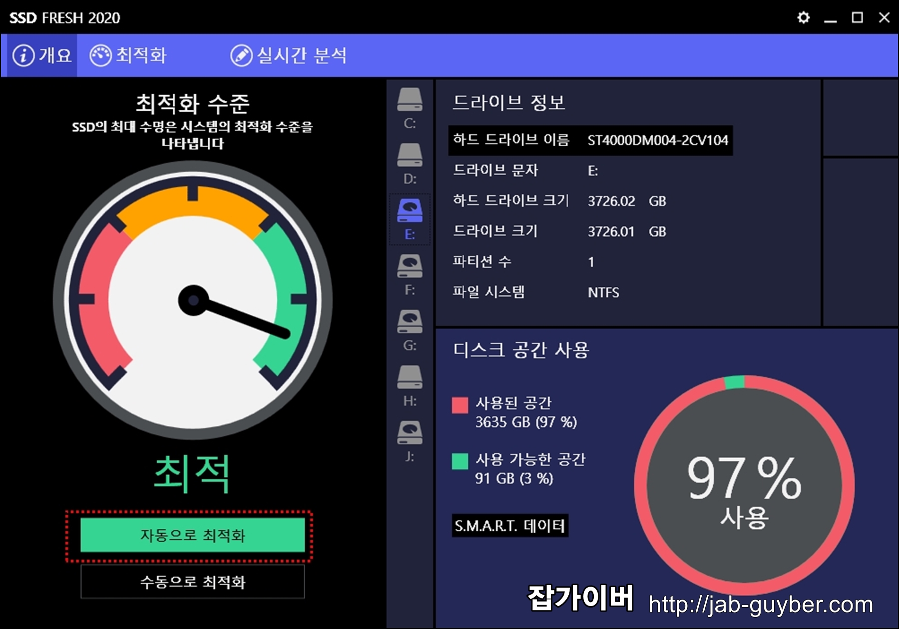 SSD를 최적화하기 전에 데이터를 저장해서 백업하거나 복구 기능도 가능합니다.