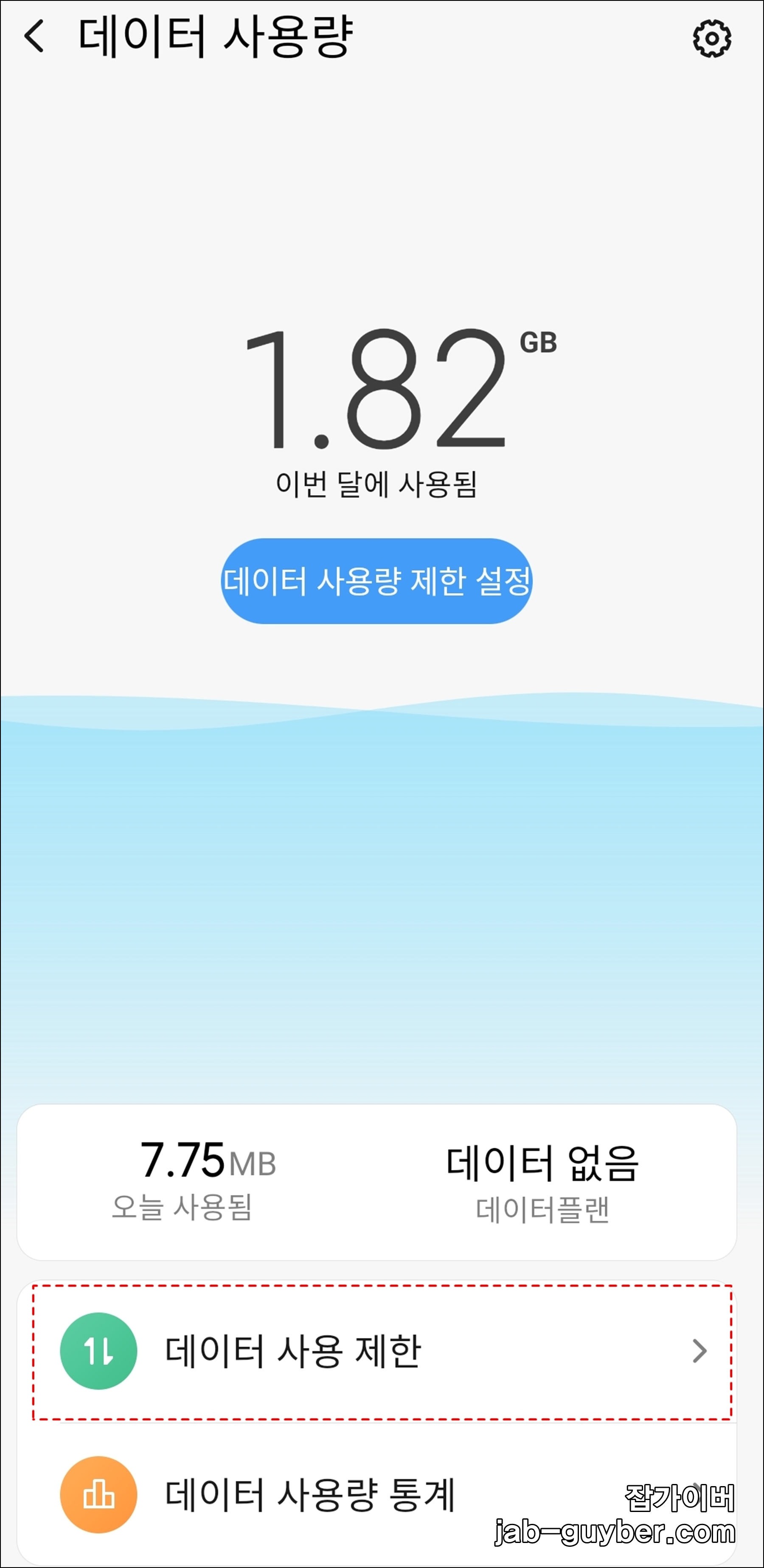 우선 안드로이드 기종의 핸드폰 모바일 데이터 사용량이 어디서 많이 소모되는지 확인합니다.