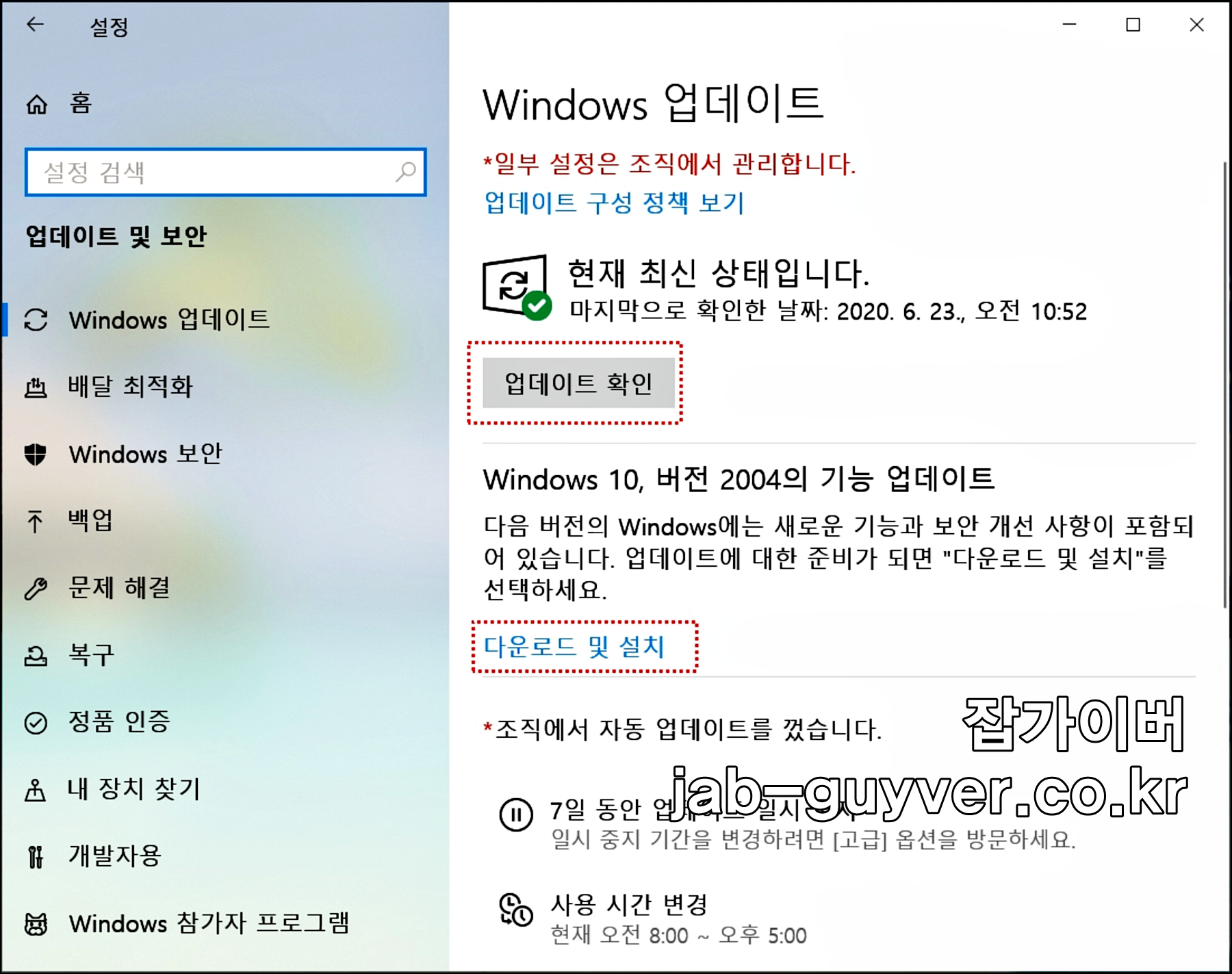 그럼 현재 윈도우10 상태가 최신상 태인지 필요한 업데이트가 있는지 확인할 수 있습니다.